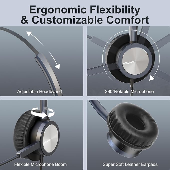 - ✅〖Ultimate Comfort〗 Our lightweight over-ear telephone headset is engineered for extended usage comfort. This call center headset exerts minimal pressure on your head, even during long wear, and features an adjustable headband to accommodate different head sizes. The flexible goose-neck microphone boom ensures precise positioning, and it can be worn on either ear, allowing seamless communication with colleagues.