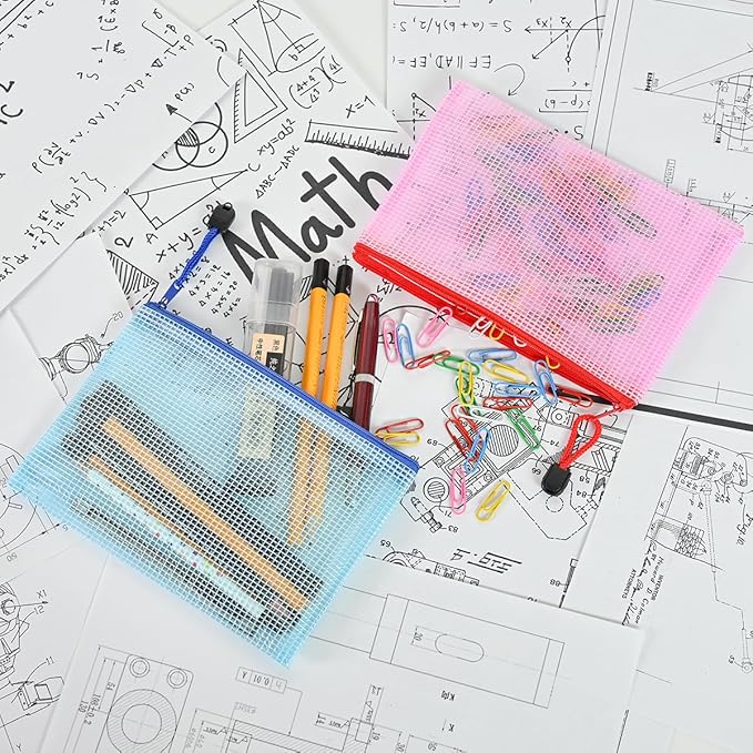 AUSTARK 20 Pcs Zipper File Bags, Plastic Mesh Pouch, Board Game Storage Bag, Waterproof Bags for Office School (B6 Size 7.6''x5.3'', Multicolored)