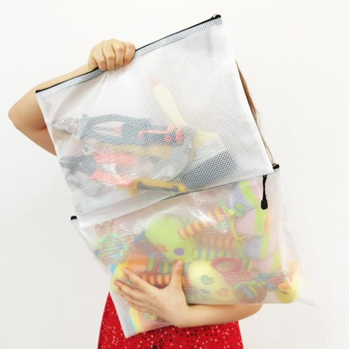 - 10 PCS Plastic mesh zipper bags, 15 x 11 inch B4 size. Widely used in office supplies, school, home daily life, hospital and travel. These pouches could meet your needs in all ways