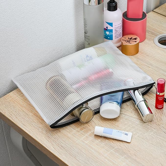 - Mesh pouches with translucent design. A solid PVC grid layout with moderate transparency could distinguish things in it easily, also protect your privacy at the same time