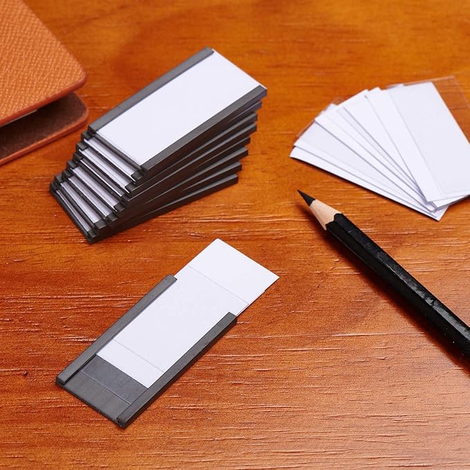 - Easy to use: write on the included paper strip, slide in the paper insert and the transparent protective film, stick the magnetic label holder to clean and flat surface, saving time and making reposition easier compared with traditional adhesive labels