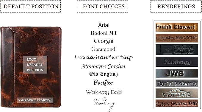 - Please note: If you place a logo custom order but don't send us a logo file, we will contact you via Amazon's mail system. If we still don't receive a response after 3 days, we will send you a folder with no logo engraving.
