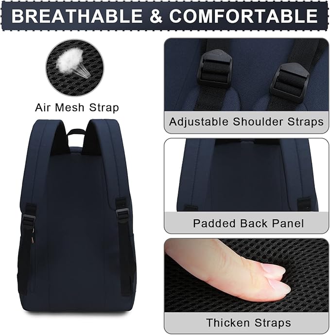- DURABLE & WATER RESISTANT: Ravuo blue backpack is made of durable and water resistant polyester fabric which could ensure the backpack last for long and well organize your laptop and books. It's a unisex bookbag that perfect for work,travel and so on.Recommended Age 3+Years.