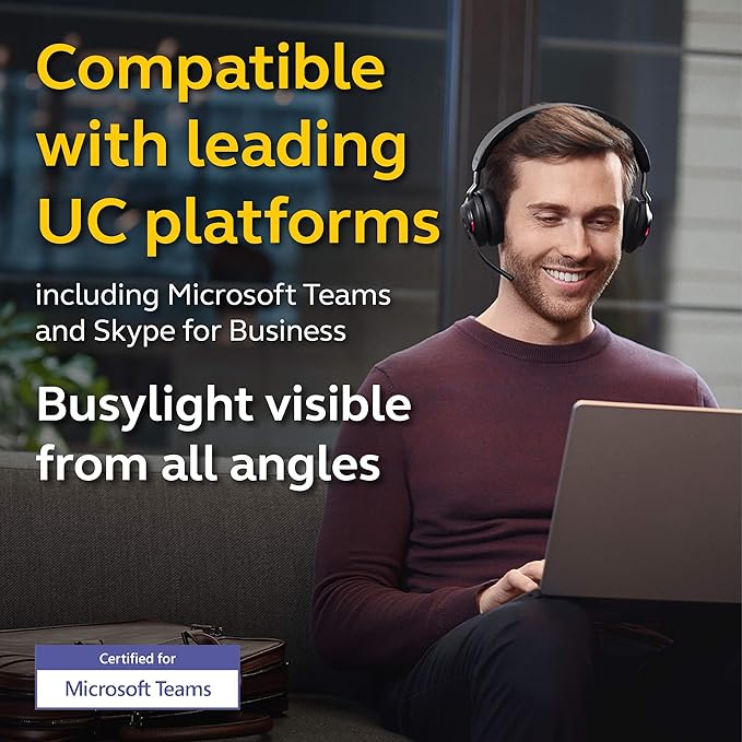 - MS-OPTIMIZED – This Jabra headset works with all leading Unified Communications platforms and is optimized for Microsoft Teams as a plug-and-play experience. Includes the Jabra Link 380c (USB-C) Bluetooth adapter