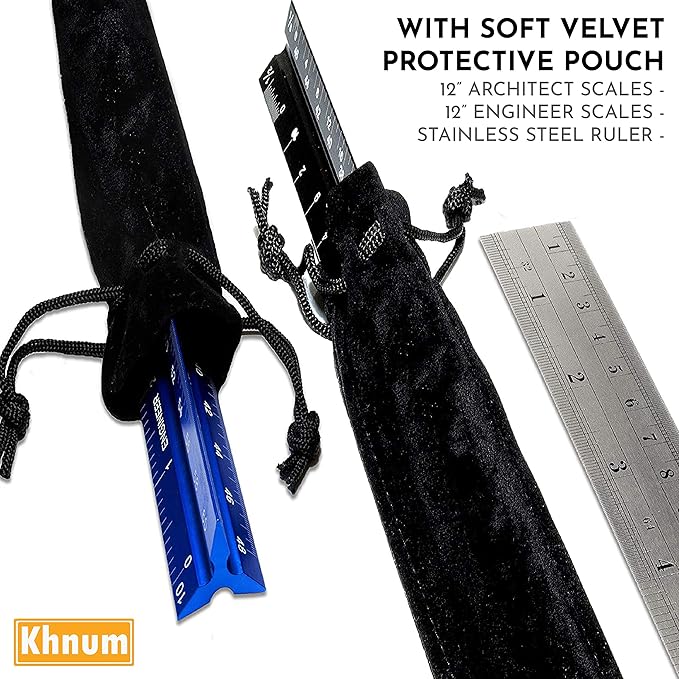 12-Inch Architectural and Engineering Scale Ruler Set (Imperial) | Laser-Etched Aluminum Triangular Drafting Tool | for Architect and Civil Engineer Blueprints | Standard Metal Ruler Included
