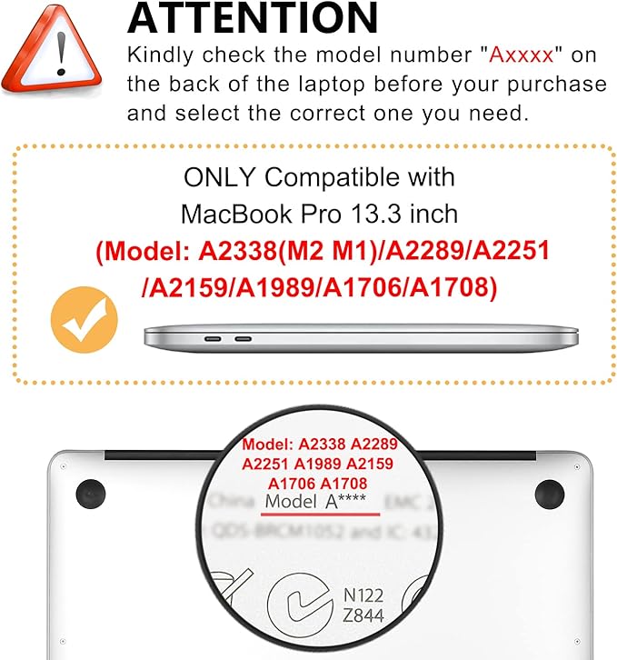- WARNING: This case was designed ONLY to be compatible with 2016-2023 Release MacBook Pro 13 inch (M2 M1 A2338/A2289/A2251/A2159/A1989/A1706/A1708 with Touch ID).