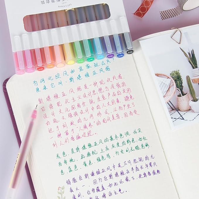- Vibrancy of the Colors : Sky Blue, Purple, Cyan, Light Green, Green, Black,Yellow, Light Orange, Orange, Light Pink, Pink, Red.One pen per color,Total 12 Counts.Ultra Fine Point Colored Gel Pens for Note Taking,Journaling,Adult Coloring Books,Kids,Our Gel Ink Japanese Style Pens Set is top of its class.