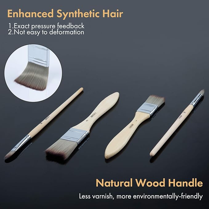 - Ferrules Stay Secure: ARTIFY paint brushes use premium glue at the wood-bristle junction, ensuring the chrome-plated aluminum ferrules remain firmly attached