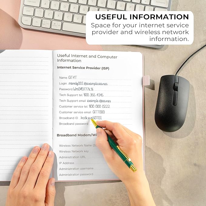 - LARGE SIZE & PREMIUM QUALITY - This internet address and password logbook with tabs comes in large size (7x10 inches). The password notebook has an eco-leahter hardcover, elastic band, pen loop, bookmark, pocket for notes, and thick 120gsm paper.