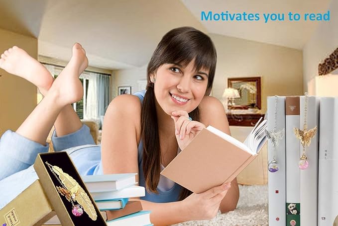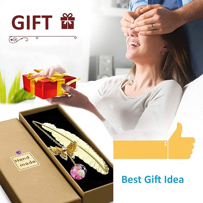 - Uniquely Designed vintage metal feather bookmarks. Featuring a realistic 3D metal butterfly pendant and eternal dried flower glass bead charm. Motivates you to read and is a cheerful topic-starter for all ages and tastes.