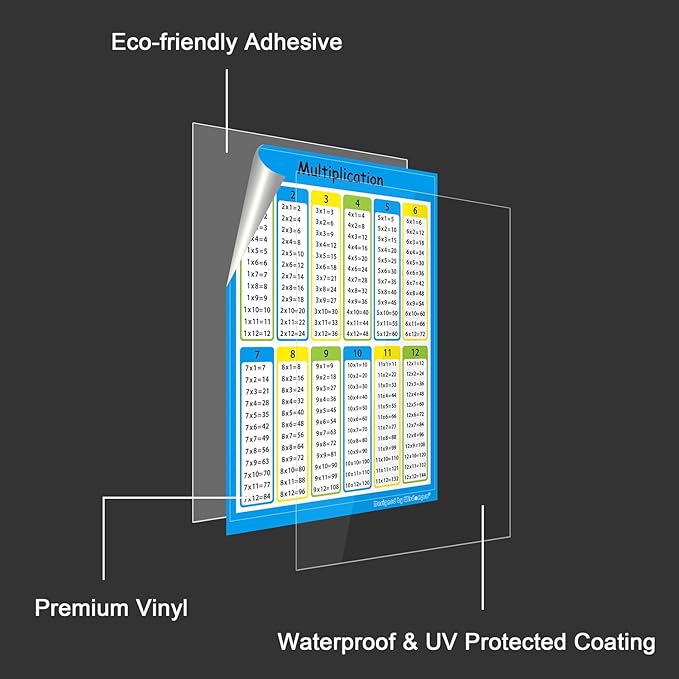 - Material: Made from premium adhesive and PP material, the multiplication chart stickers are waterproof, wear resistant and tear resistant.