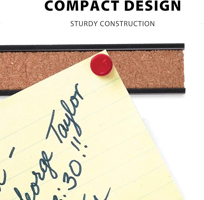 Corksidol Bulletin Bar Strip, Cork Board, 15" x 1", Classroom, Office, Cubicle, Aluminum Frame (Black)
