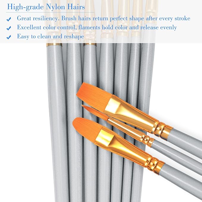 - Warm Tips: Clean your brushes immediately after using them, avoid scrubbing while cleaning. Never leave your brushes resting on their heads in water, solvent, or when drying. Store clean brushes vertically, head-side-up or horizontally. What You Get: 10pcs artist brushes set * 2 and friendly customer service, if you have any question with your painting kit, be free to contact us and we will make it right for you within 24 hours.