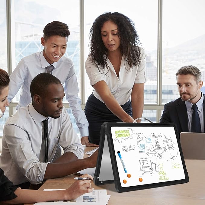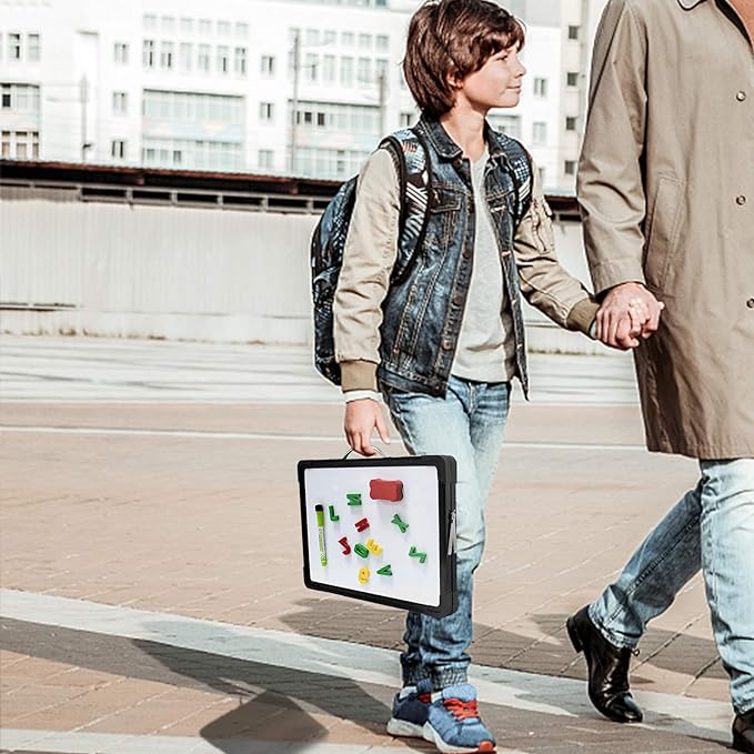 - 【Portable & Multi-Use】2.4lbs double-sided magnet dry erase board easel with solidly built but light weight which can stand on any desktop, It is portable with a handle on the top for travelling, so It is a good choice for home, office, small group instruction, kitchen, stores, dormitory and classroom etc. Perfect for play counting, guided reading, learning, presentation, drawing, education and grocery list etc, without paper wasting.