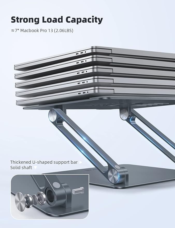 - Ergonomic Design: The MacBook air pro stand holder works as a raiser to elevate the laptop screen to your eye level. The office computer stand let you fix posture and relieves neck, shoulder and spinal pain, it's very comfortable for working at home, office and outdoor, make typing more easier.