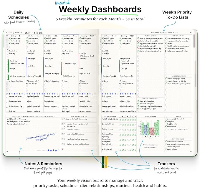 - Smash Your Goals & Prioritize Wellness: 5 Roles & Goals templates for purposeful goal setting. Reading, Bucket lists, & Self Care journal. AM/PM Routines, habit, nutrition, fitness, and health trackers included. Perfect planners 2024-2025 for women and men.