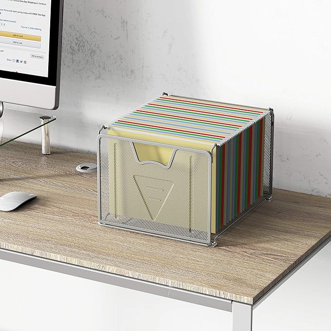 • Mesh desktop organizer: Sturdy steel mesh construction with silver finish