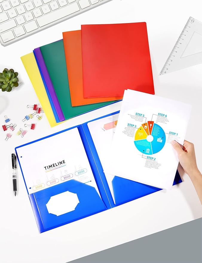 - DURABLE AND LONG-LASTING: Made from high-quality materials, our plastic twin-pocket folders are built to withstand the wear and tear of daily use, ensuring they last for years to come.
