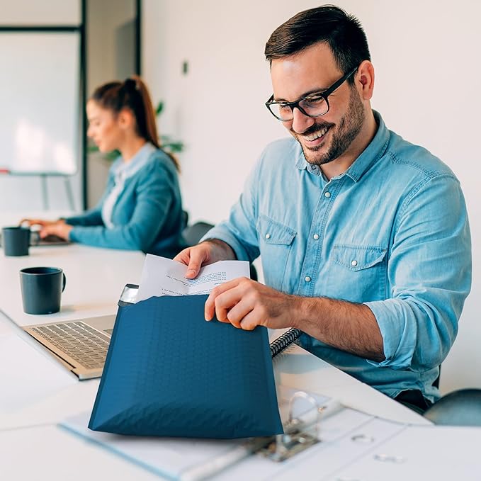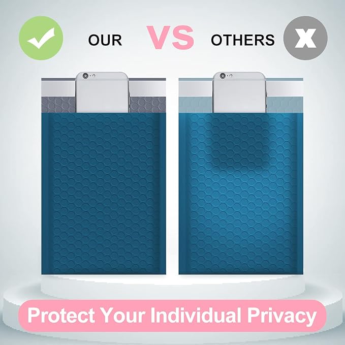 - Opaque Poly Bubble Mailers: The navy blue bubble mailers outer size is 8.5x12 inch, while the inner size is 8.5x11 inch. With full air bubbles, our bubble mailers can protect your value products from damage caused by external impacts. The inner lining is using gray film, even if there is strong light, the items in the bag cannot be seen, which can protect your privacy well