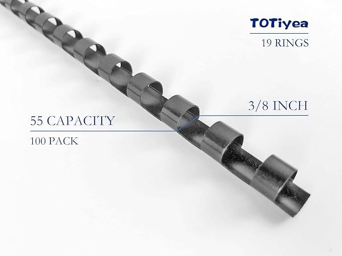 TOTiyea 100 Pack Plastic Comb Binding Spines,3/8 Inch Diameter,60 Sheet Capacity,Letter Size (8.5x11 Inches) Black Binding Combs