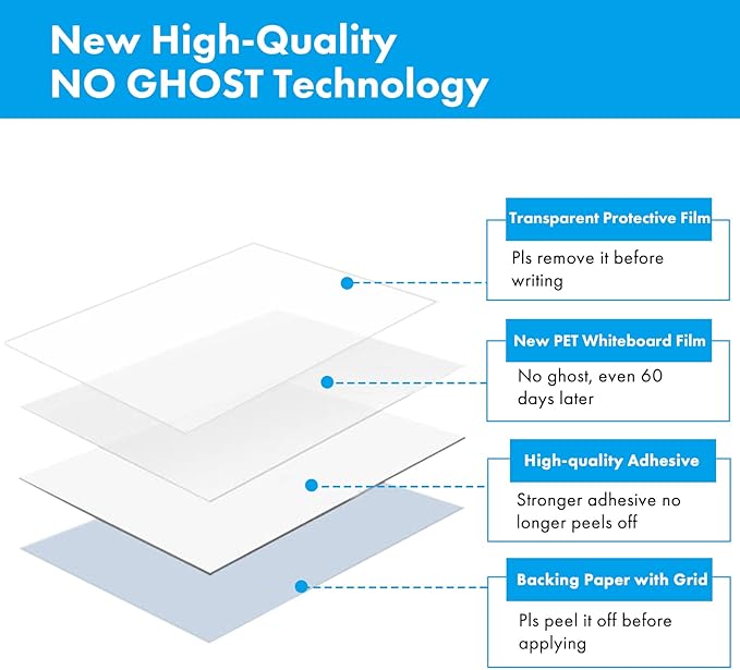 - SUPER EASY to WIPE – The product has been upgraded and is currently a high-quality whiteboard. Even if leave drawings on it for a month, they still erase with ease. NOTE: pls REMOVE the TRANSPARENT PROTECTIVE FILM on the whiteboard before using it.