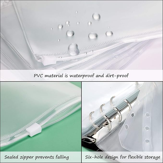 - Material: made of PVC, quality waterproof material, tear resistant, able to keep your items safe from water and dust, soft to the touch, durable, and can be applied for a long time; Note: when you just received the loose leaf bag, there will be a little curling, which is caused during transportation; After receiving the goods, you can open the zipper and blow it with hot air from a hair dryer to restore the original shape; The temperature should not exceed 60 degrees