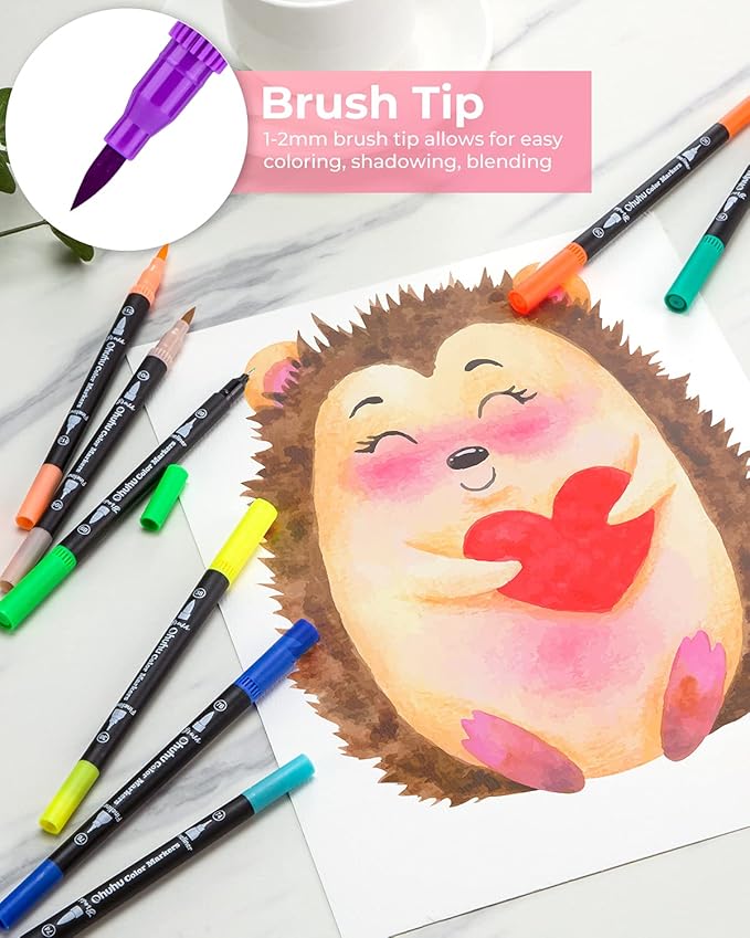 - BRUSH & FINE, DOUBLE TIPS, DOUBLE CREATIVITY: These dual-tipped drawing pens are a must-have for your next masterpiece. The 0.4mm fine tip can glide through the details for intricate coloring, writing, and doodling with fluid precision while the 1-2mm soft brush tip flows through the large area art projects for shading, coloring, blending and more.
