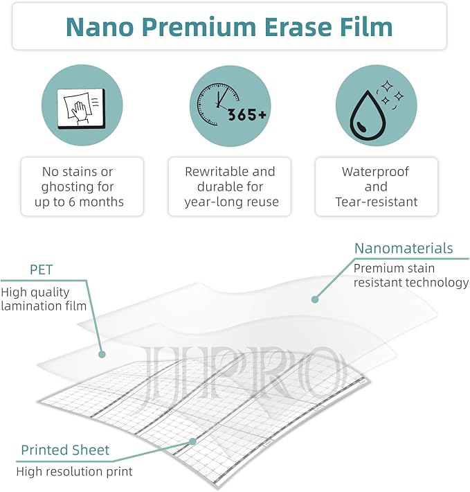 - WET ERASE - With nano premium erase film, it will be a breeze to wipe off the writings even after several months; it’s not going to leave any stains; it’s waterproof, so you can clean it with a wet cloth if you want.