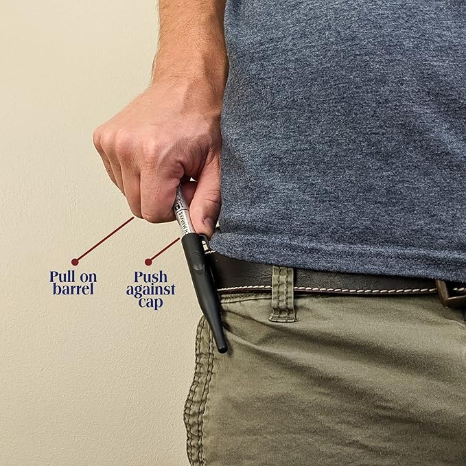 - HANDLING: Easy one-handed handling. Attach the clip to your pants or belt, place your thumb on the top of the clip, push with your thumb and pull with your index and middle finger until the marker releases from the cap.