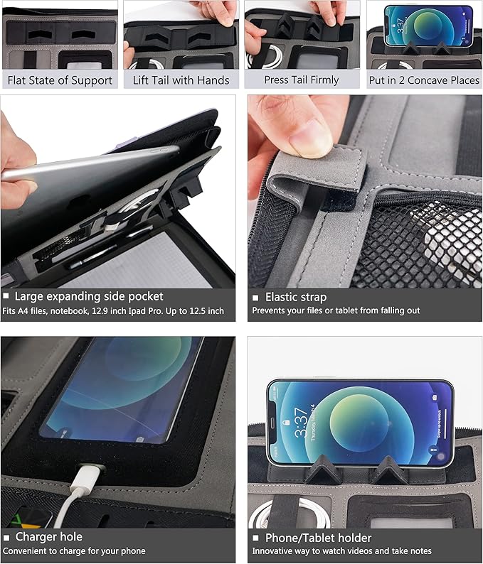 - 【PERFECT SIZE】Slim zippered portfolio easily fits into most bags & briefcases. The size is 34cm*26cm*2.5cm, and the internal clipboard size can accommodate A4 size and Letter size paper or files. The cell phone bag size can accommodate mobile phones up to 6 inches or less. The large tablet pocket can hold up to a 12.9-inch tablet. Some office portfolio notebooks / executive binders are too bulky, but GraduatePro portfolio is slim. Perfect for your modern life.