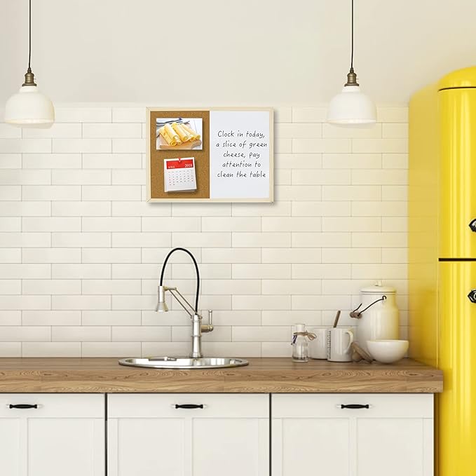- Combination Board: Magnetic dry erase board, writing is very smooth. Bulletin board has super self-healing ability, which is enough for long-term use