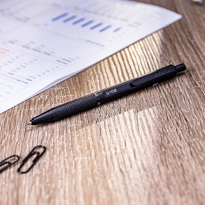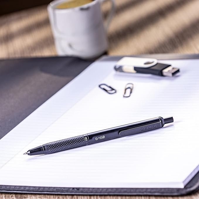 Zebra Pen G-450 Retractable Gel Pen, Black Brass Barrel, Medium Point, 0.7mm, Black Ink, 2 Count (Pack of 1) (49512), Black, Refillable
