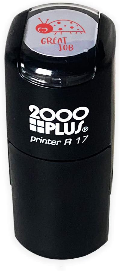 • Includes: One 9/16" round self-inking ladybug stamp. Red ink. Stamp incorporates the phrase "Great Job!" above an adorable illustrated ladybug.