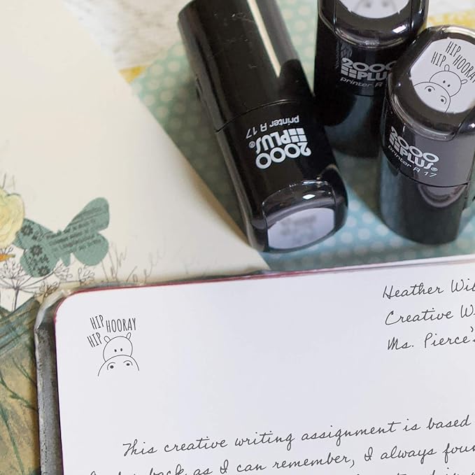 Hip Hip Hooray! Hippo Stamp / 2000 Plus Self Inking Teacher Stamper/Black Imprint Planner Worksheet Stamp