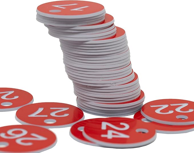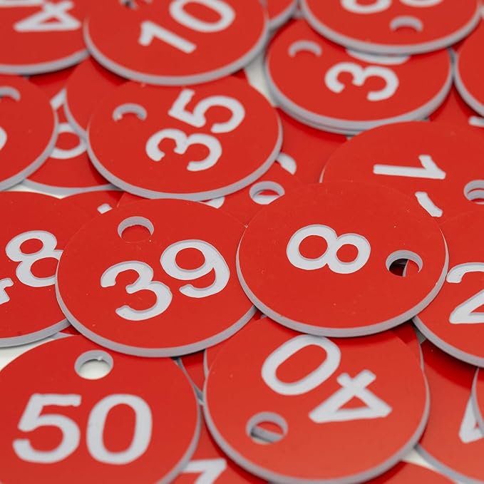StayMax Plastic ID Number Tags Engraved Tags Key Tags Without Key Rings (1-100, Red)