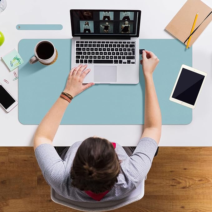Boutilon Leather Desk Pad 30" x14",Non-Slip Mouse Pad,Office Desk Mat,Waterprooft PU Leather Desk Blotter,Desk Pad Protector,Desk Writing Pad for Home Office Decor (M-Light Blue)