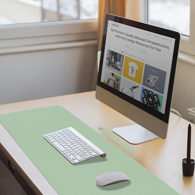 Boutilon Leather Desk Pad 30" x14",Non-Slip Mouse Pad,Office Desk Mat,Waterprooft PU Leather Desk Blotter,Desk Pad Protector,Desk Writing Pad for Home Office Decor (M-Green)
