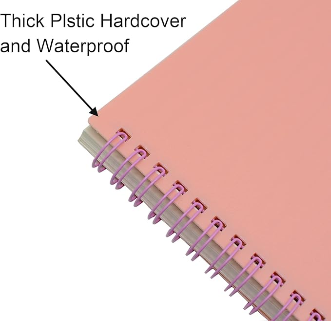 Yansanido Spiral Notebook, 4 Pcs A5 Thick Plastic Hardcover 8mm Ruled Pink 80 Sheets -160 Pages Journals for Study and Notes (Ruled-4pcs Light Pink, A5)