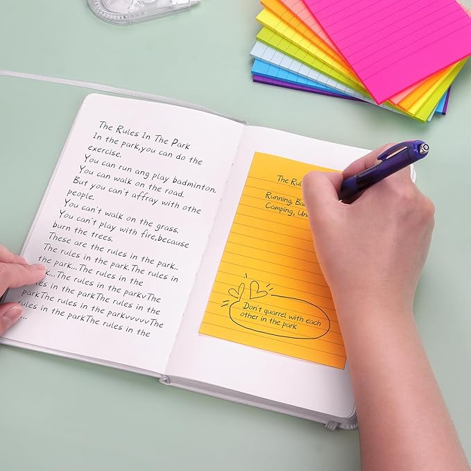 Eastern Wolf 8 Pads Lined Sticky Notes 4x6 Sticky Notes with Lines Self-Stick Note Pads 8 Bright Multi Colors, 35 Sheet/Pad