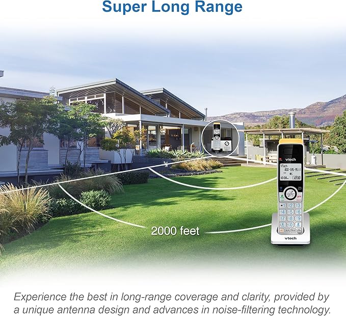 - SUPER LONE RANGE UP TO 2300 FEET Experience the best in long-range coverage and clarity, provided by a unique antenna design and advances in noise-filtering technology. With over 2000 feet or range, you can be on a call anywhere in your home, yard, or even your neighbors home.
