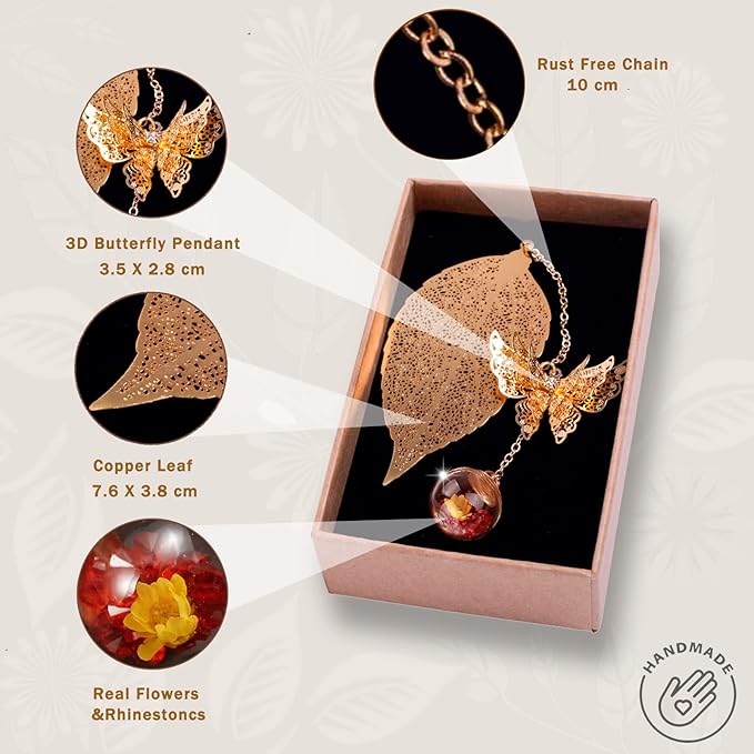 - Charming Butterfly Accent - The butterfly charm adds an extra touch of whimsy and grace. This delicate detail, combined with the elegant metal leaf design, makes it a standout gift for women who appreciate unique and thoughtful accessories. Perfect for gifting during the holidays, including Christmas and Thanksgiving.