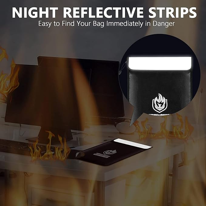 - High-Viz for Fast Evacuation at Night: Benefit by the night reflective strip design, you can locate your fire proof money bag for cash immediately even at night! Time is life in a fire, our goal is to quickly find your most important things and go in a critical moment