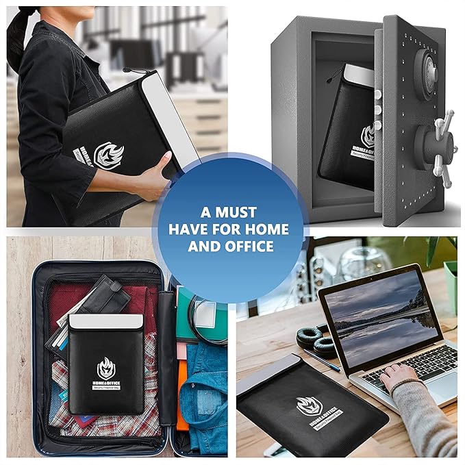 - 100% Fireproof & Water Resistant: This UL certified upgraded fireproof bag is constructed primarily of fire-resistant, heat-insulating functional materials that can withstand ultra-high temperatures. Meantime, the Sealed zippers are totally waterproof which can survive the spray of firefighter's hose on full blast, provides 360° security seal and maximum protection for your documents