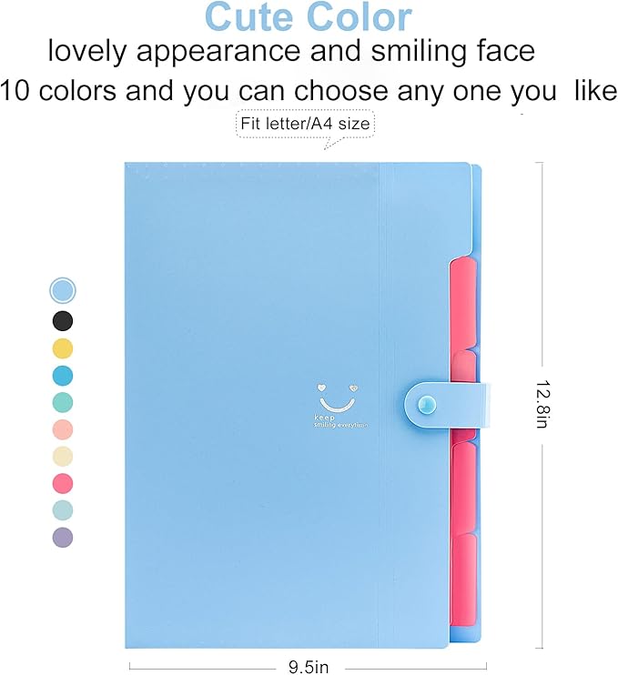 • Cute and rich color: Lovely appearance design and a cute smiley face. There are altogether 10 cute and vibrant colors and you can choose any color you like. Different colors can quickly help you distinguish your files.