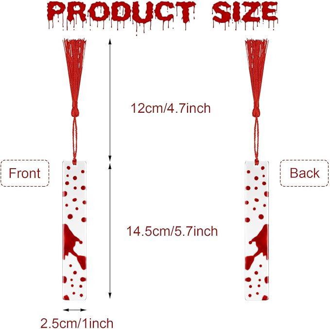 - Size and material: each blood drop acrylic bookmark is 2.5 x 14 cm/ 1 x 5.5 inch, the proper size to be placed into book; The bookmark is made of sturdy acrylic with vivid and bright blood stains, which is waterproof and durable