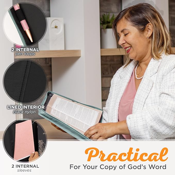 - Laser Engraved Secure Zipper Closure: Ensures your Bible stays clean and safe inside. Slip your loose notes, bulletins, or tissues inside for easy storage. This encouraging, motivational cover is a lovely gift for that special woman in your life whether she be a professional, teacher, church leader, mom, sister or daughter.
