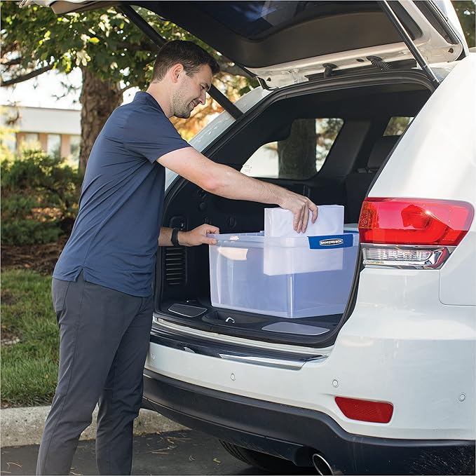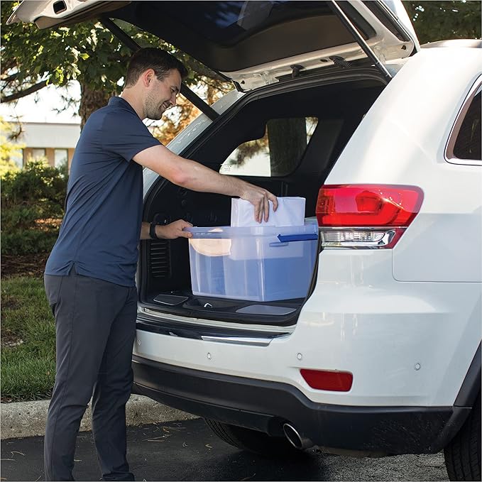 • Plastic storage containers with lids provides organized and secure storage and transport of 20” of letter files