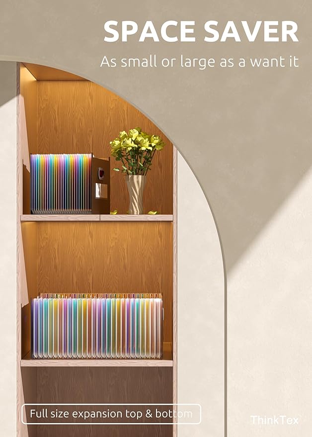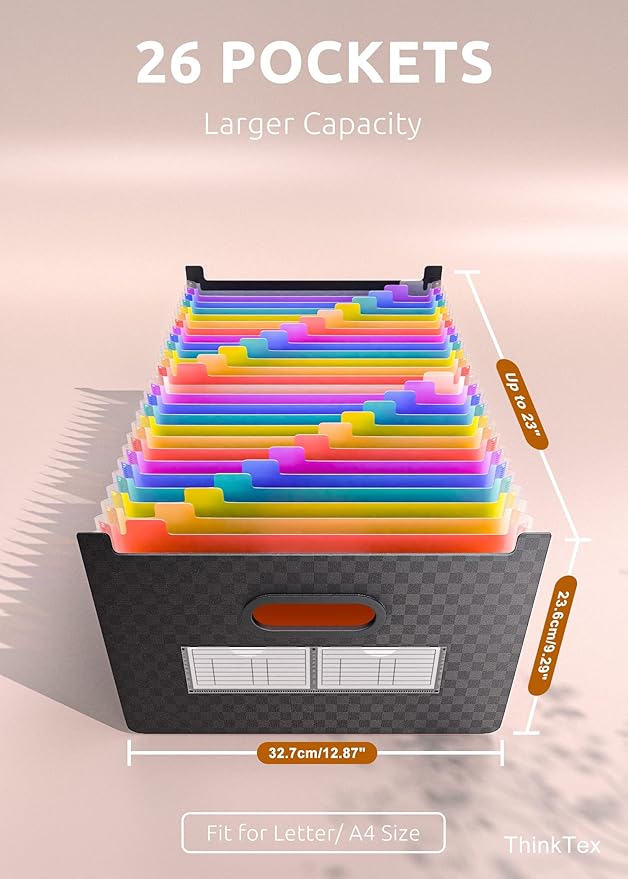 - UPRIGHT & EXPANDABLE - ThinkTex Accordion File Organizer, 26 pockets, A-Z multi-colored tabs, Open top, for letter/A4 size