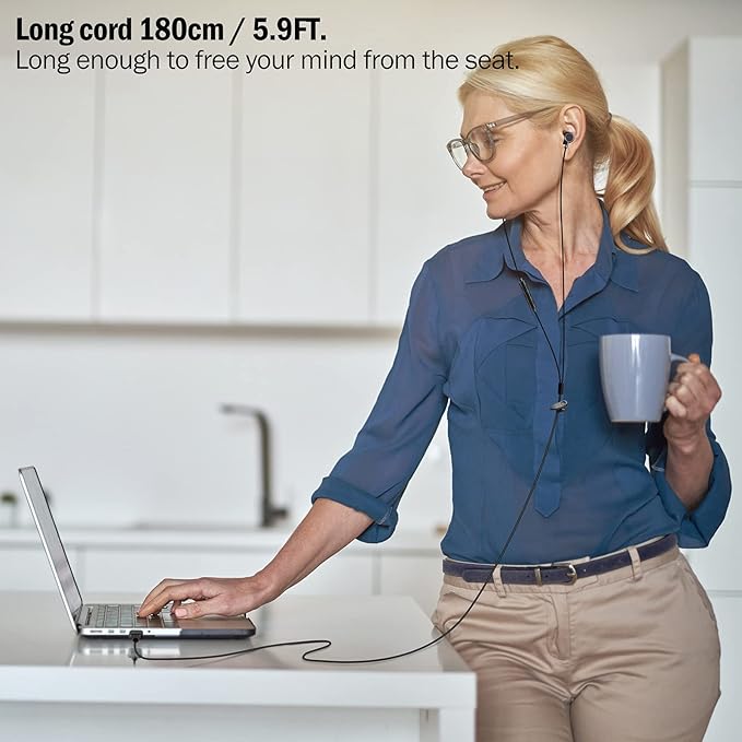 - NOISE ISOLATION & LONG CORD: Included 3 sizes silicone ear tips provide noise isolation, blocking out many noise for better focus. The 5.9ft (1.8m) cord offers plenty of space for comfortable movement.