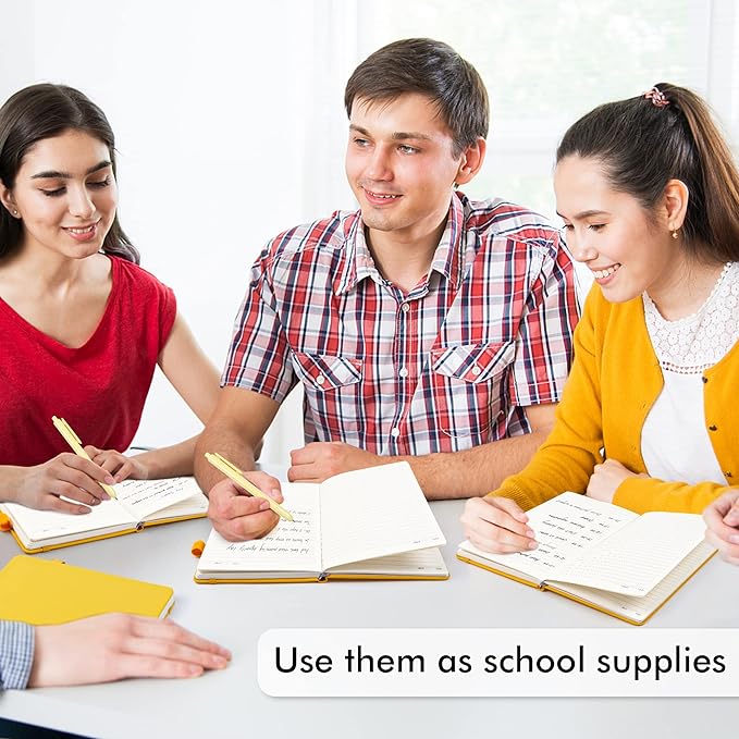 12 Pack Notebooks Journals Bulk with 12 Black Pens, Feela A5 Hardcover Notebook Classic Ruled Journal Set with Pen Holder for School Business Work Travel Writing, 120 GSM, 5.1”x8.3”, Yellow